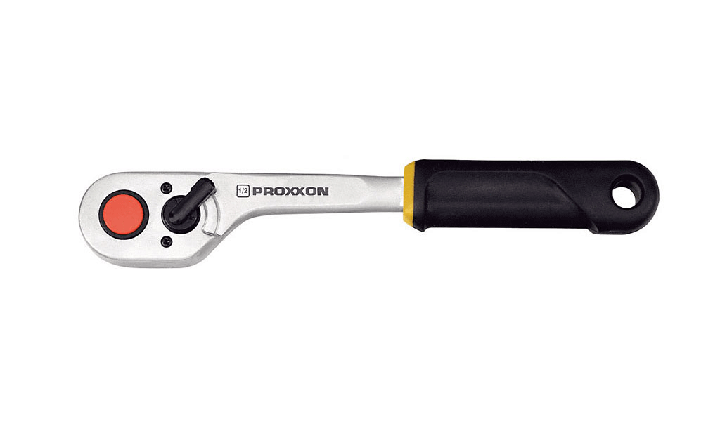 Endentement irréprochable: plusieurs des 72 dents s'enclenchent simultanément pour permettre la transmission d'un couple extrême. Libération de la douille par bouton poussoir. Tête et manche forgés d'une seule pièce. Poignée en TPR (Thermoplastic Rubber) résistant aux graisses et aux acides avec oeillet pratique pour suspendre.